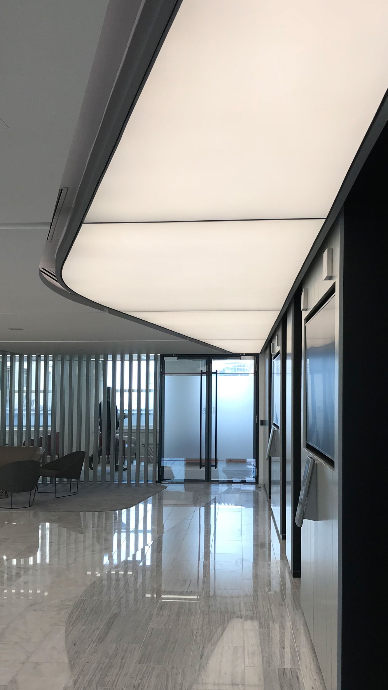 When the client moved its operations to Centre Point in 2008, we took full advantage of the breath-taking views that this iconic building offered with an interior scheme designed to mirror the buildings historic architecture. A stunning full height curved partition wall and floor to ceiling glazing separates the reception from the back of house. Curves continue to feature with furniture and accessories chosen to enhance the space. The neutral colour palette is offset with wood, glass and marble finishes that enhance the flow of natural light that reflects and diffuses throughout the space.